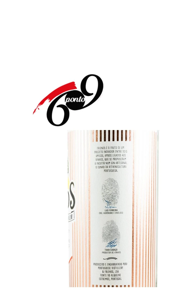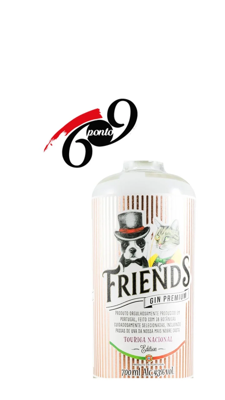 Friends é o fruto de um projeto inovador entre dois amigos. Ambos ligados aos vinhos, que se propuseram a incutir num gin artesanal o cunho da vitivinicultura portuguesa. De Estremoz, no Alentejo, surge o primeiro gin feito a partir de uvas da casta touriga nacional. Estagiadas em barricas de carvalho juntamente com passas de uva da variedade Touriga Nacional. Segue para as cubas de maceração onde são adicionadas 37 botânicas. A destilação é efetuada em dois alambiques tradicionais de coluna fabricados em Portugal.. Neste gin encontramos um equilíbrio entre acidez e exuberância aromática, mais floral do que cítrica.